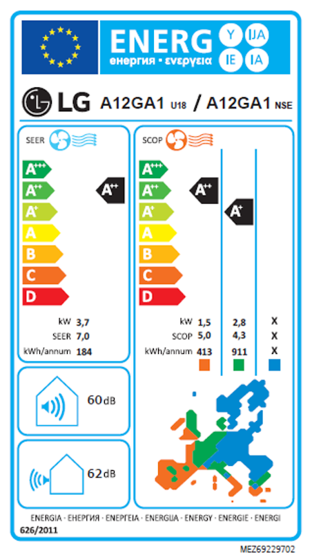 | SEER koeficijent | 6.9 |